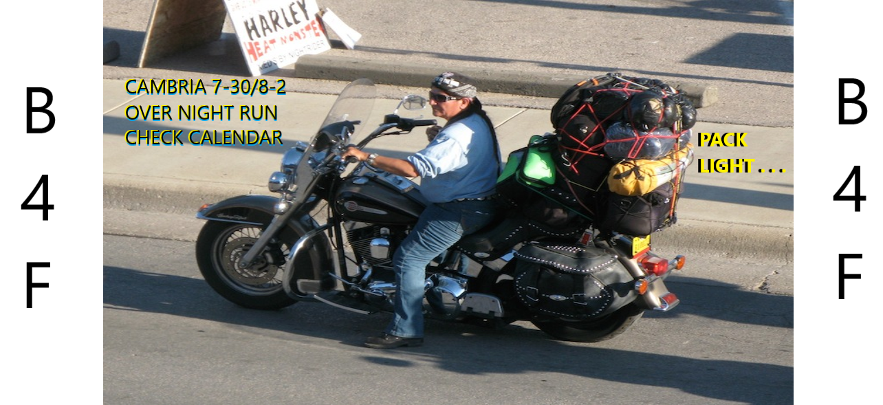 THIS SHOULD BE A FUN OVER NIGHT RUN, CHECK JULY 30 – AUGUST 2, 2026 ON OUR CALENDAR FOR DETAILS.