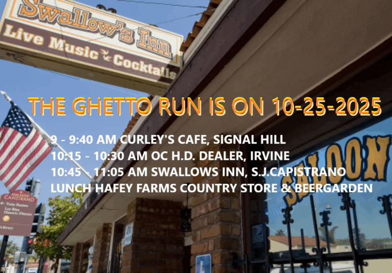 SAT. OCT. 25, 2025 THE GHETTO RUN IS SWALLOWS INN & ORTEGA HWY